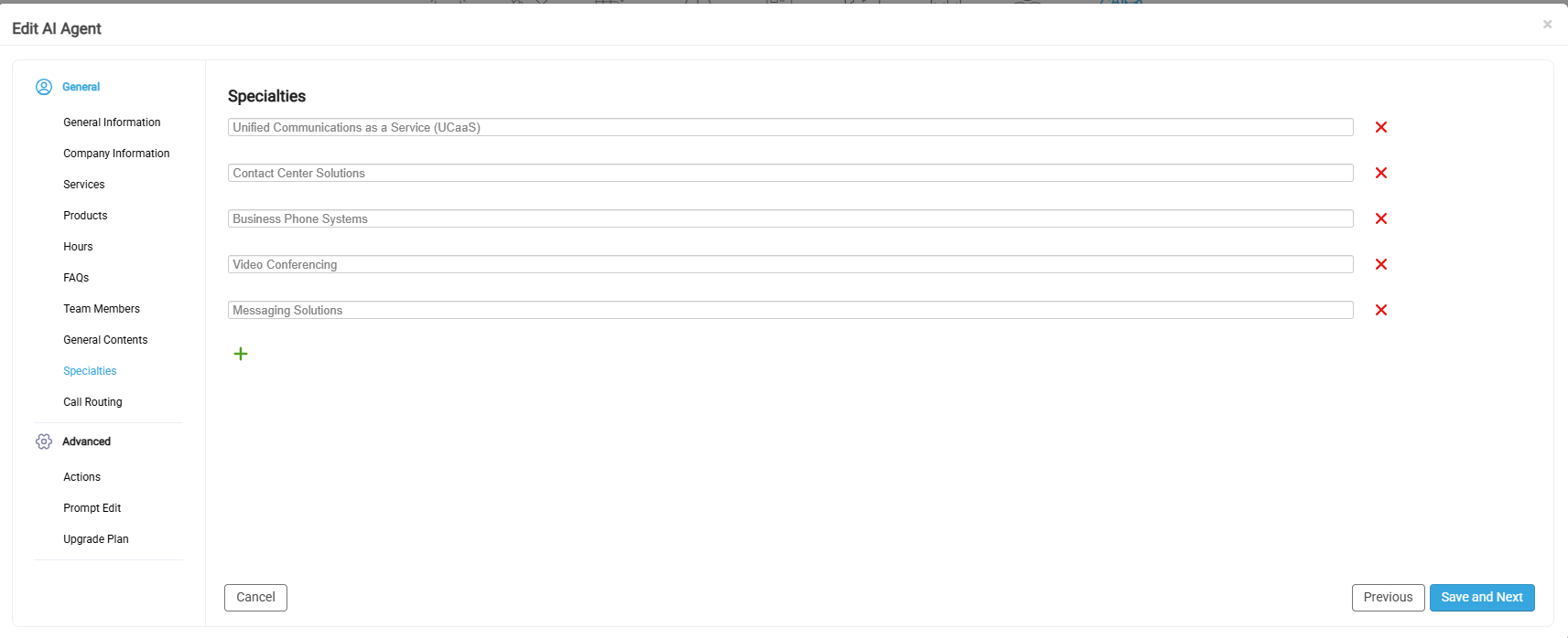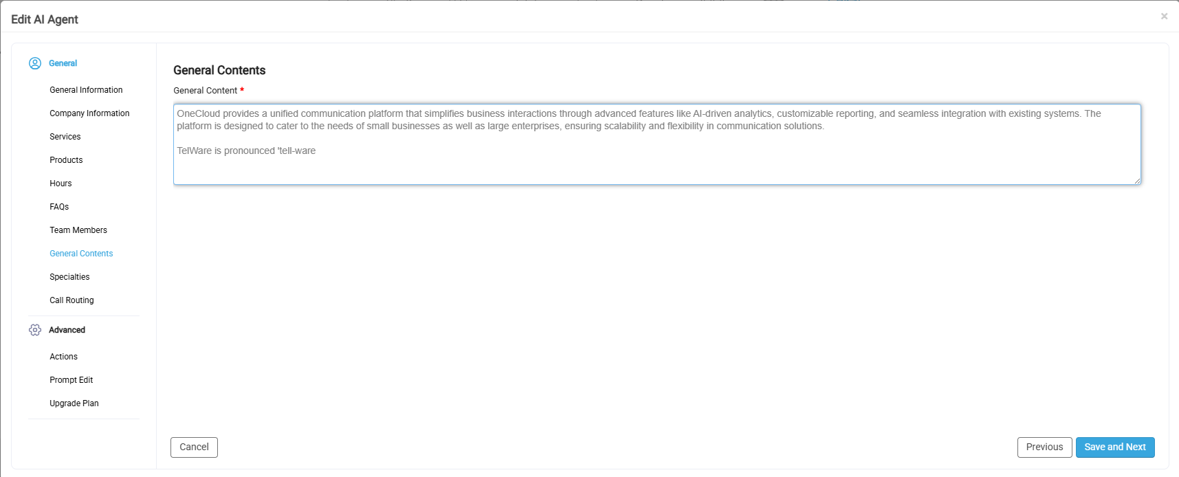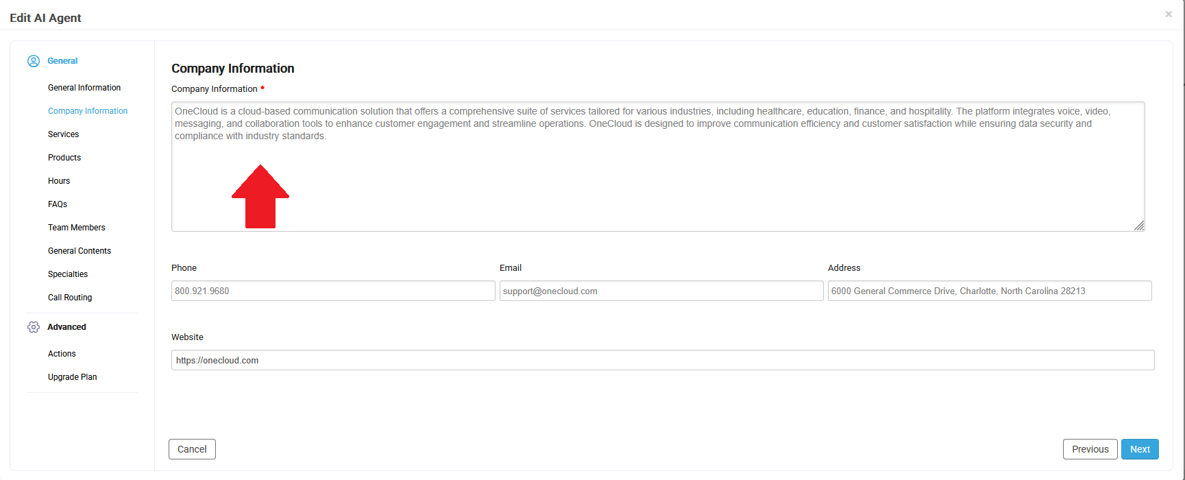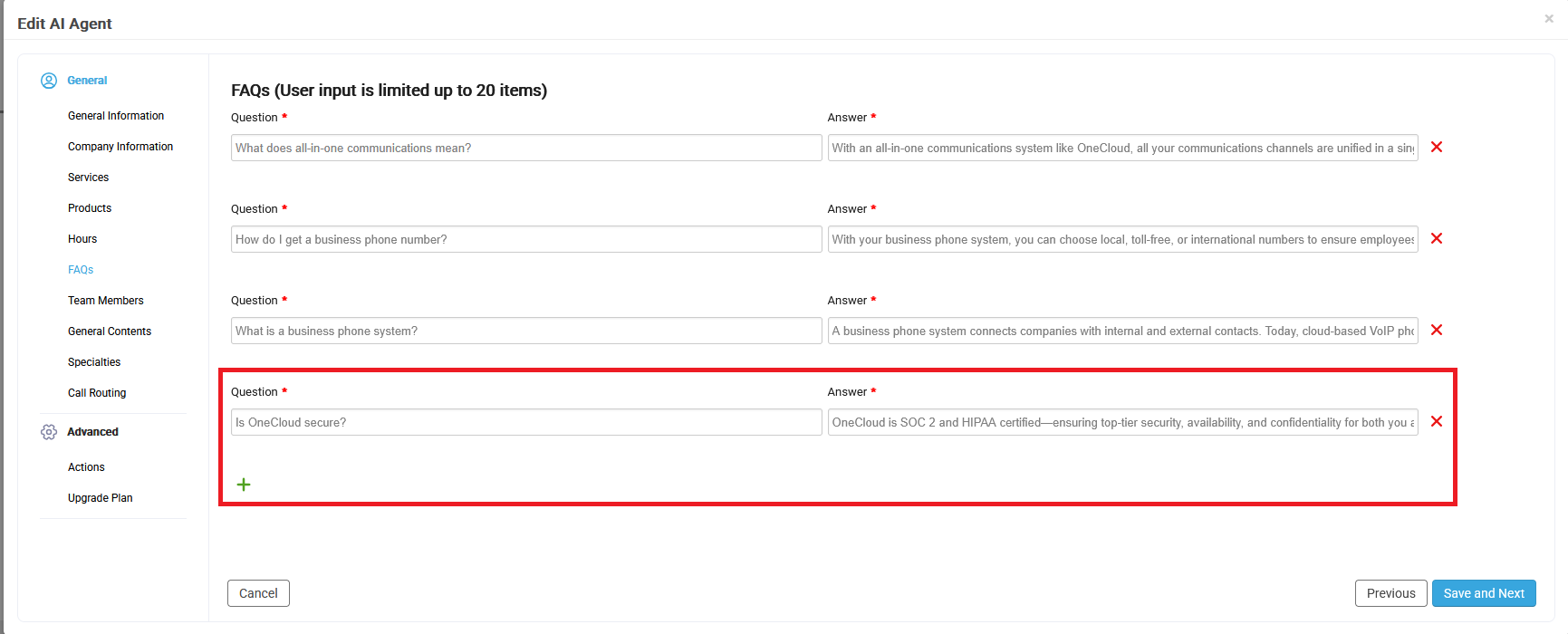 details about your business that callers frequently ask about. Your AI Agent will be prepared to answer questions using this information.
