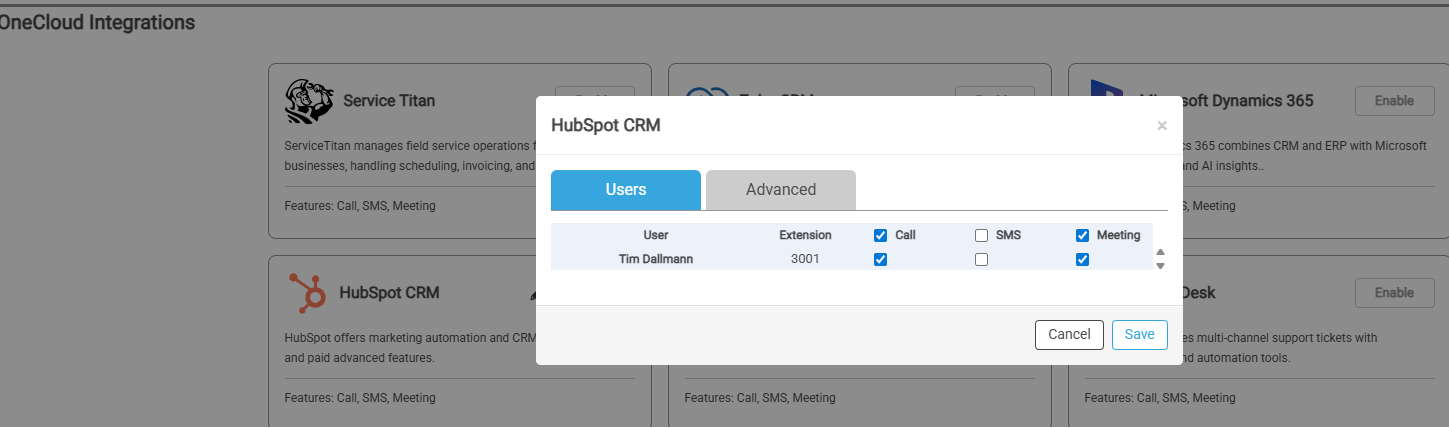 Once the app is connected, HubSpot admins need to configure user extensions for accurate call and SMS logging.