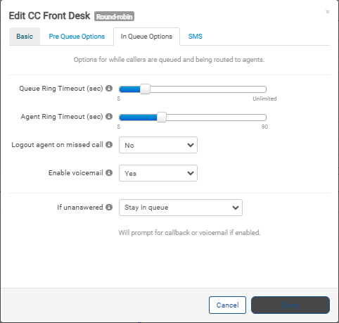exit option. In simple terms, the Queue Ring Timeout controls how long a
