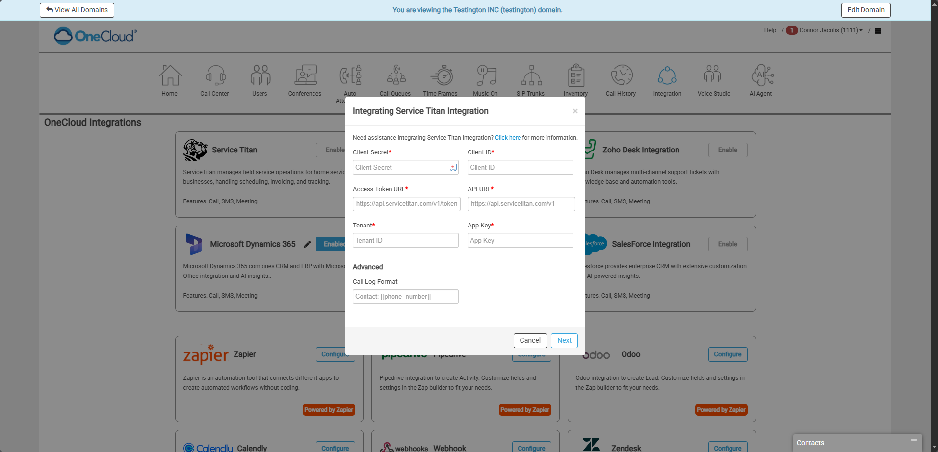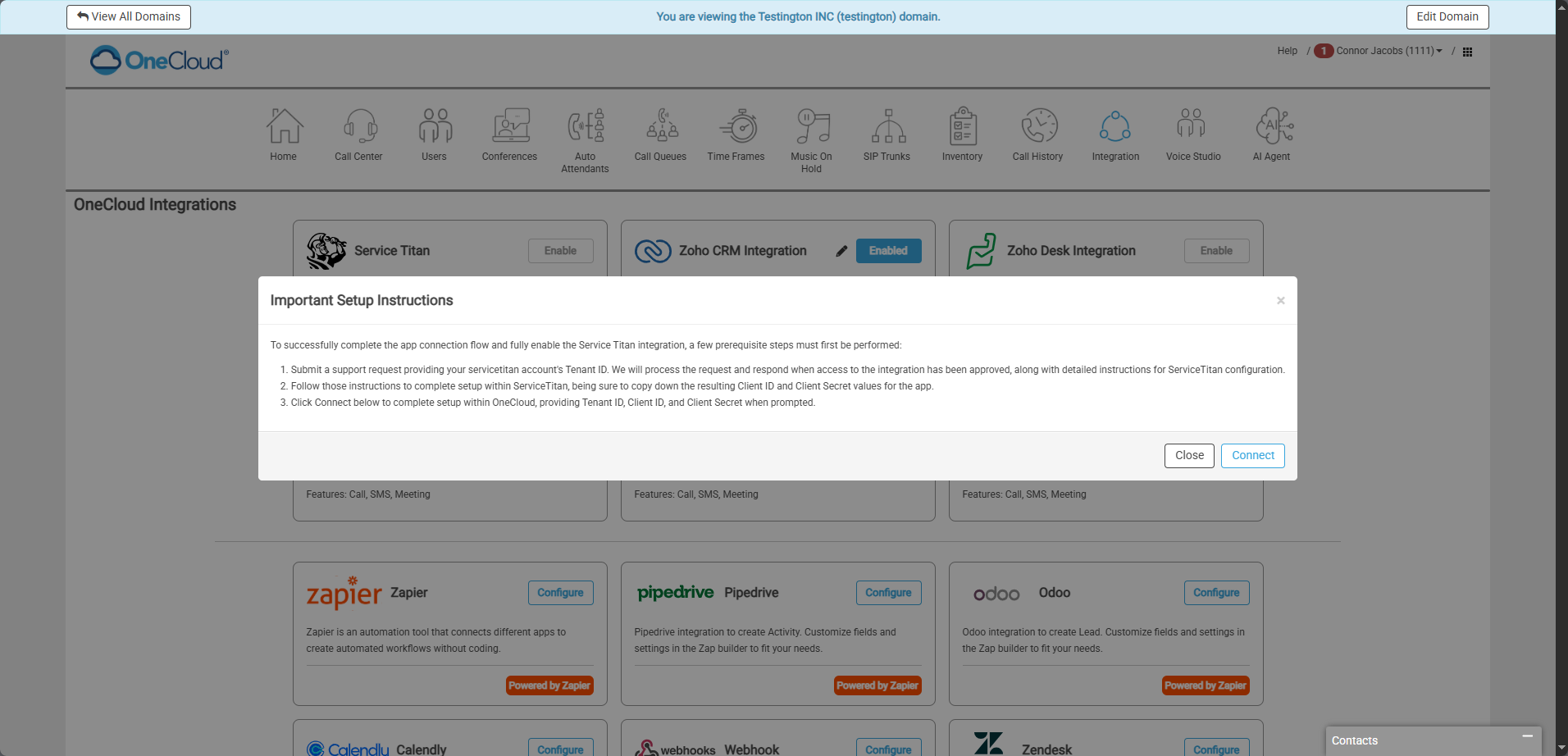 OneCloud Integrations | How to Setup Service Titan Integrator in the UCaaS Portal