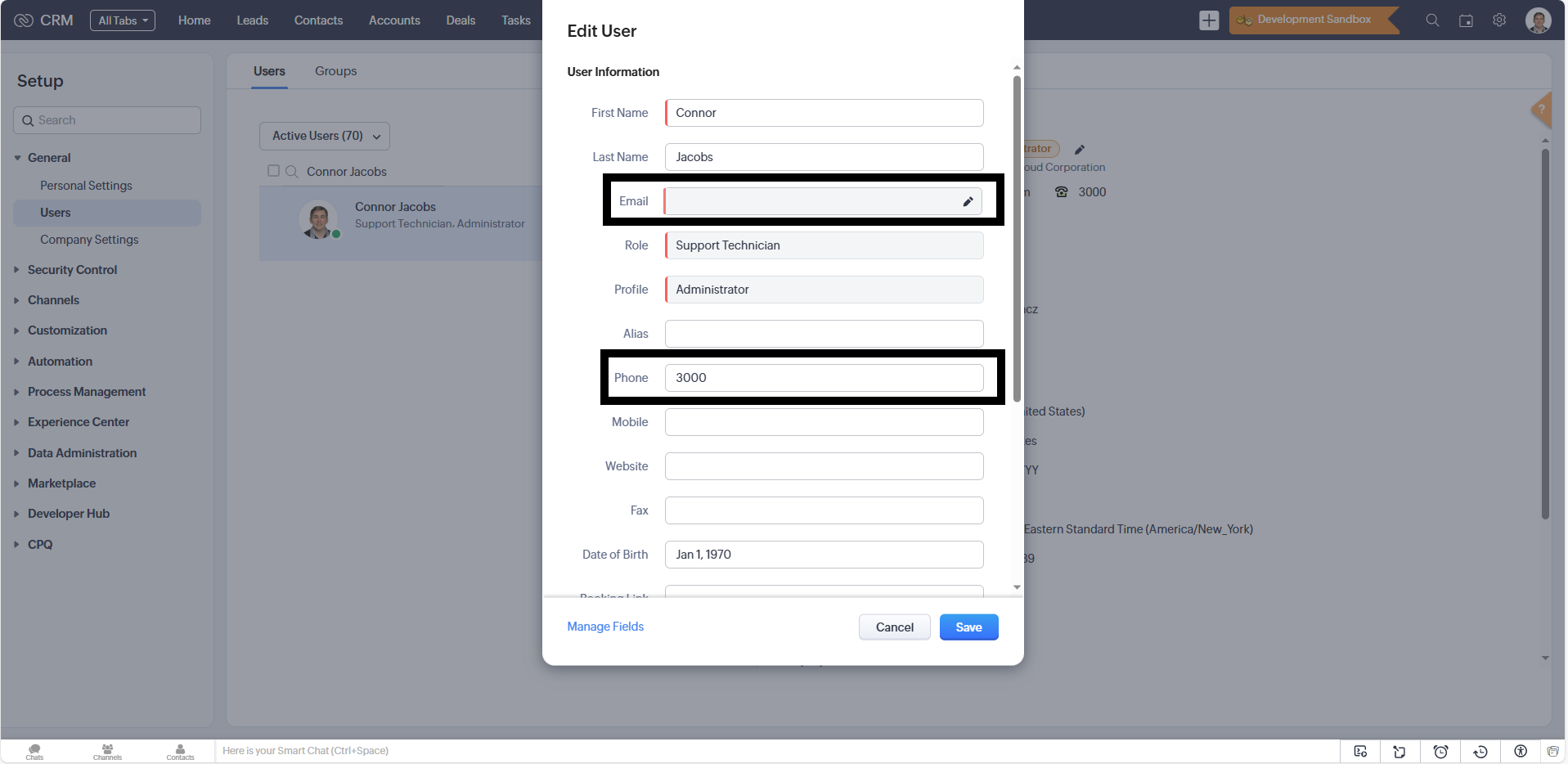 No Email Present? If a UCaaS Agent/User doesn't have an email address, the Zoho CRM administrator can add the user's extension number in Zoho CRM.