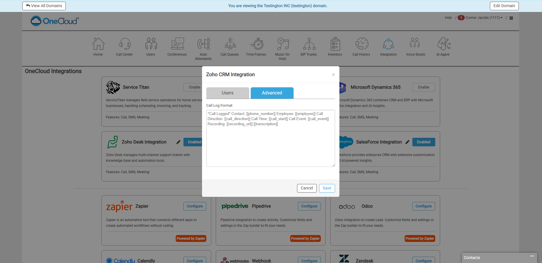 OneCloud Integrations | How to Setup the Zoho CRM Integrator in UCaaS Portal