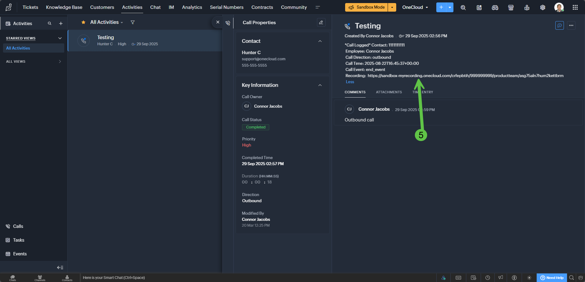 Please Note: For security compliance OneCloud provides a link to the recording in the Notes/Description Section of the Call Recording.