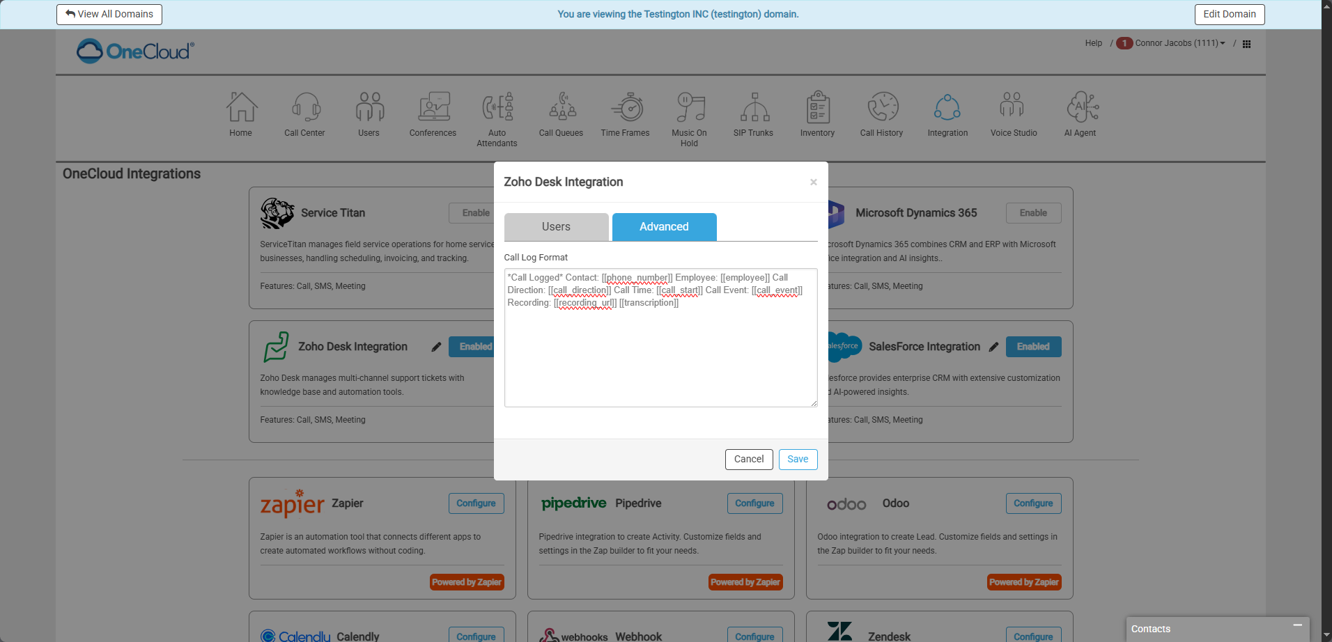 OneCloud Integrations | How to Setup the Zoho Desk Integrator in UCaaS Portal